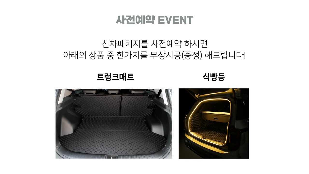 OPTION: 추가 선택 상품신차패키지 시공시 적용되는 할인된 금액으로 상품을 추가해 보세요. (일부 상품 제외) |