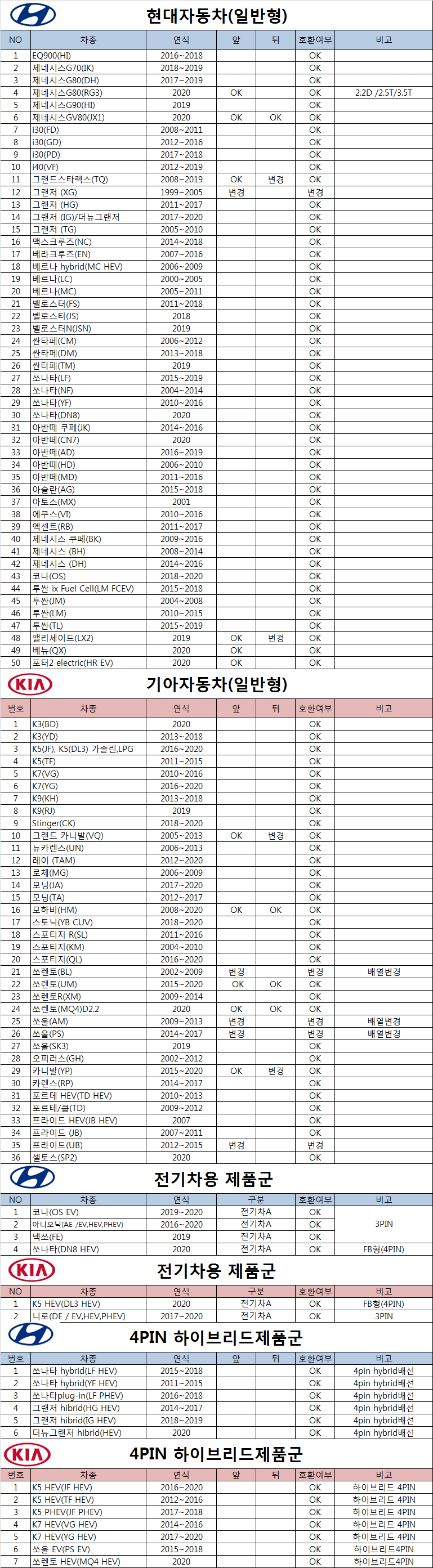 하이브리용 주문시 차종+년식 체크 해주세요