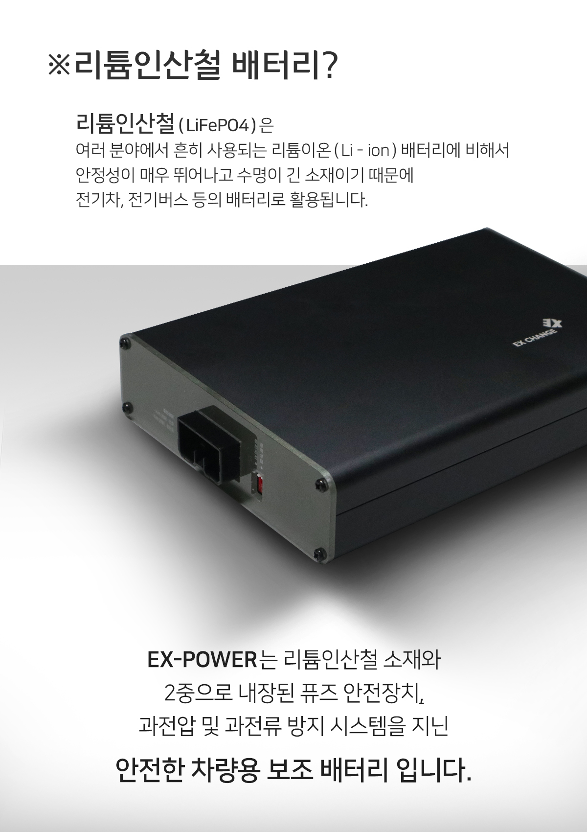 1. 고성능 인산철배터리(화재 및 폭발위험 없음)