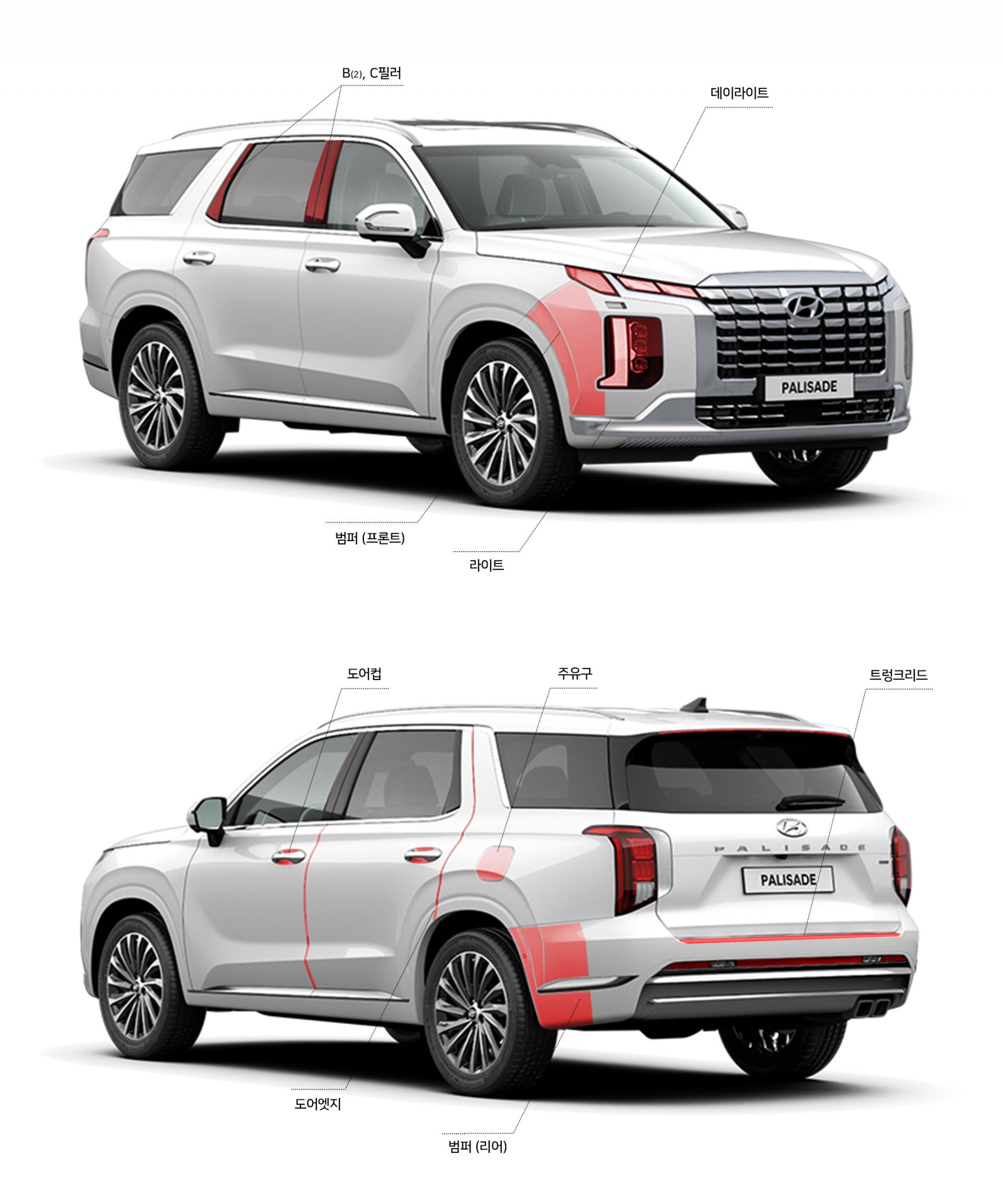 안심 패키지 | 기본+범퍼+필러 (라이트, 데이라이트, 트렁크리드, 도어컵, 도어엣지, 주유구, 프론트/리어 범퍼 코너, B⑵, C필러) | 420,000 |