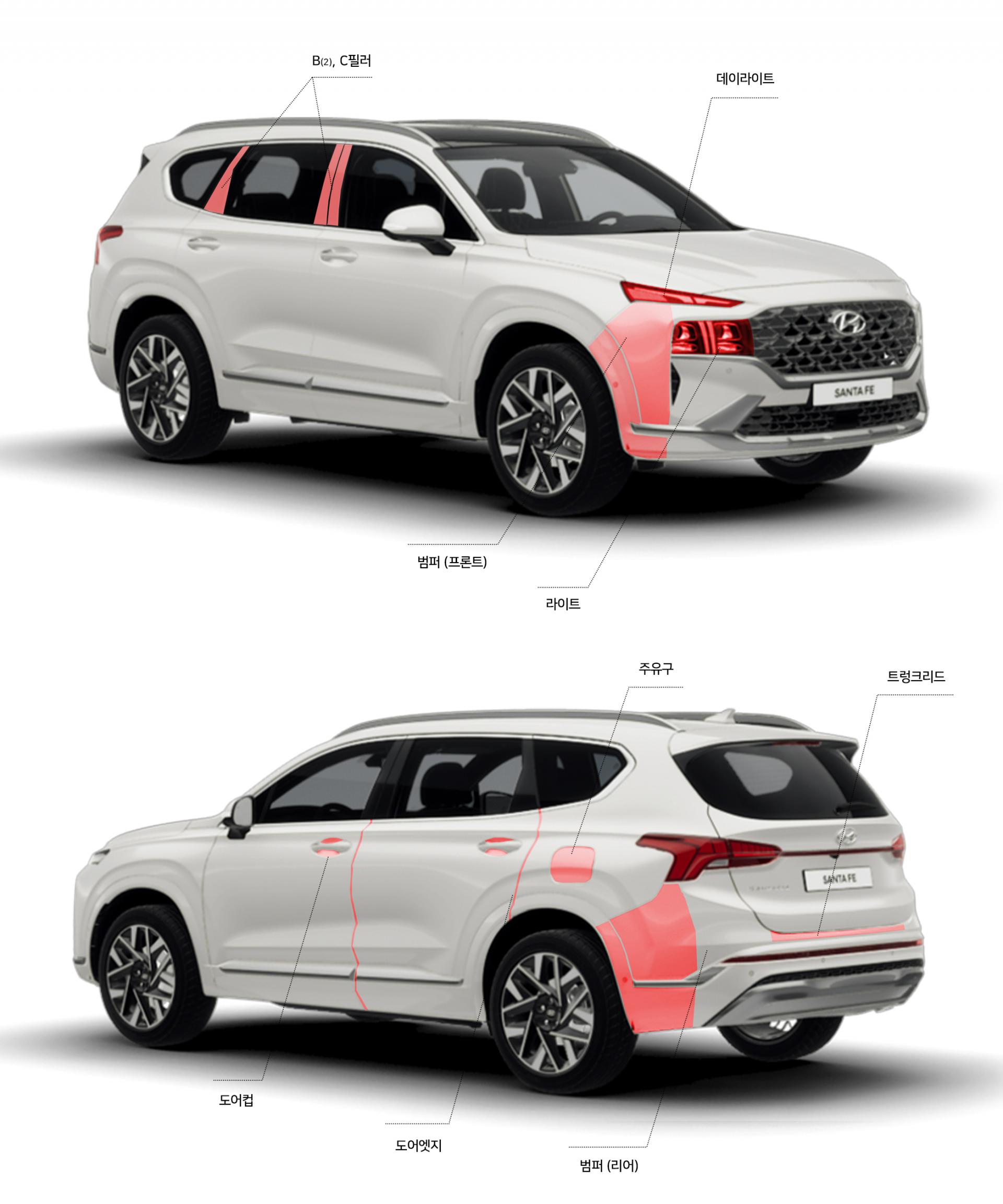 | 안심 패키지 | 기본+범퍼+필러 (라이트, 데이라이트, 트렁크 리드, 도어엣지, 도어컵, 주유구, 프론트/리어 범퍼코너, B⑵,C 필러) | 430,000 |